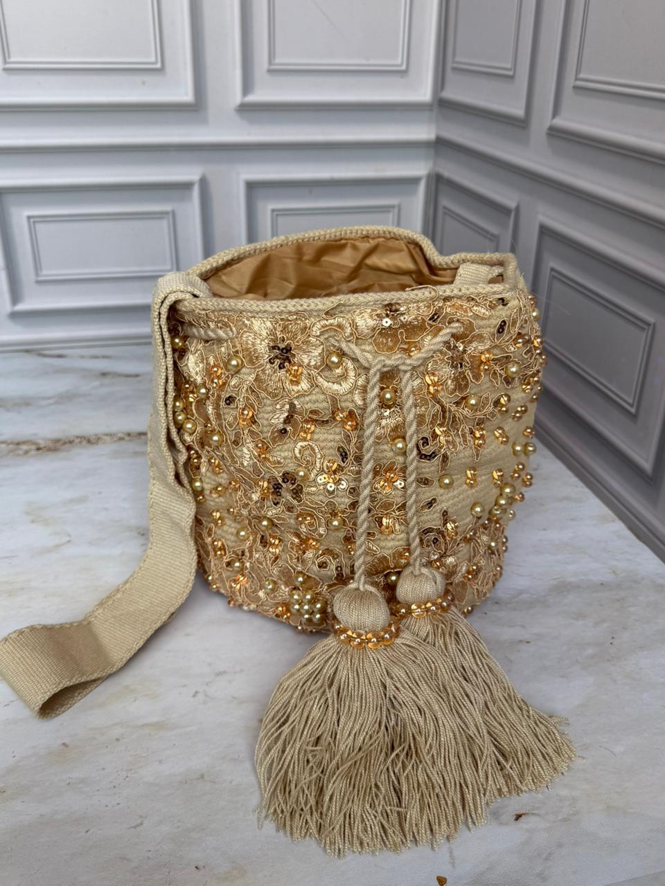 Nuestra mochila mediana recamada es una pieza tejida a mano por artesanas Wayuu, elaborada con hilos resistentes y decorada con bordes y detalles en mostacilla que la hacen única, femenina y perfecta para el día a día.